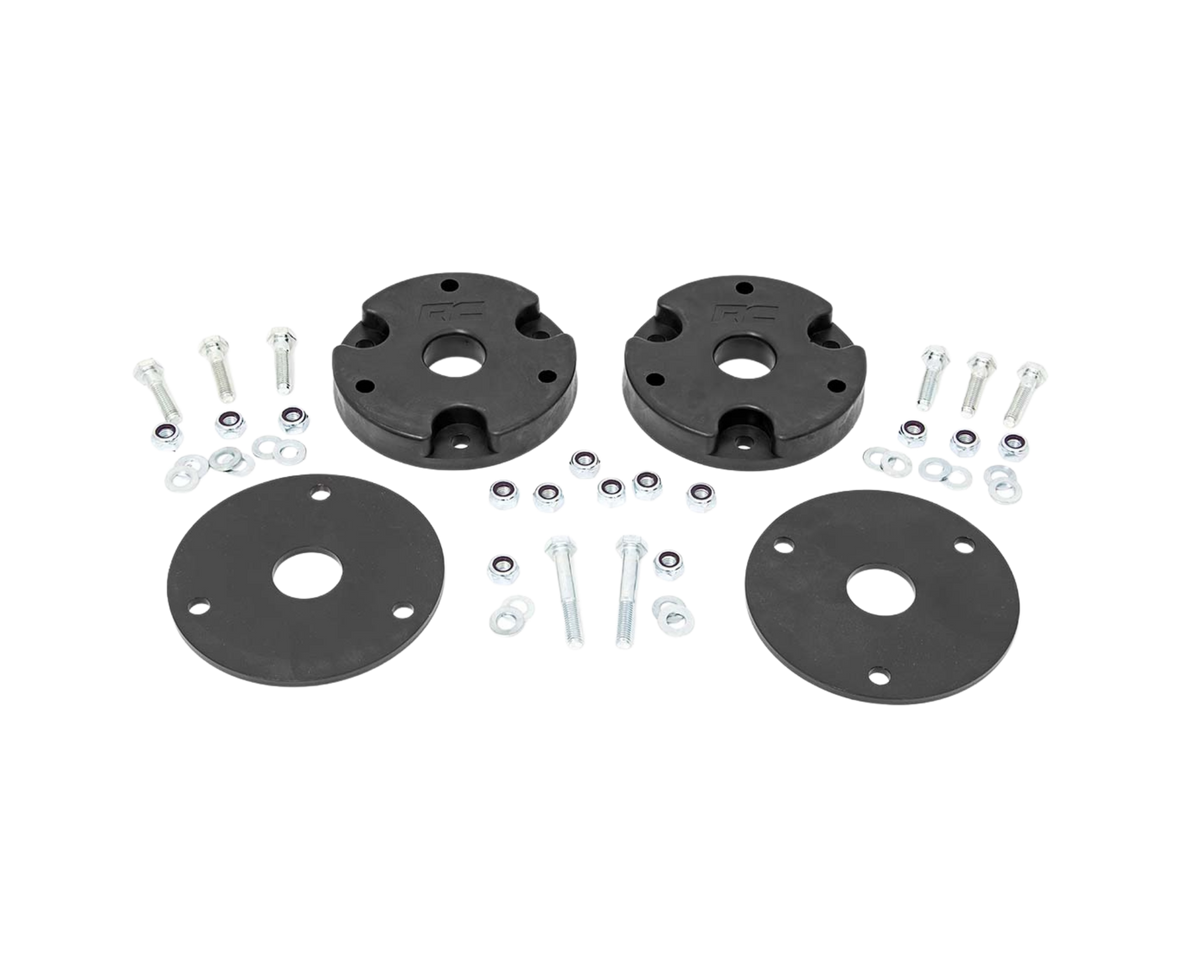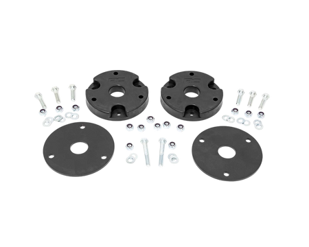 Don't limit your new truck! Rough Country's GM 1500 Leveling Kit features an upper-strut spacer design which is designed to improve CV boot clearance compared to bottom mount spacers. This design offers better clearance for off-road driving so you can tackle uneven terrain with greater peace of mind. Best of all, Rough Country's 2-Inch Leveling Kit is designed to retain your vehicle's smooth, factory ride quality.