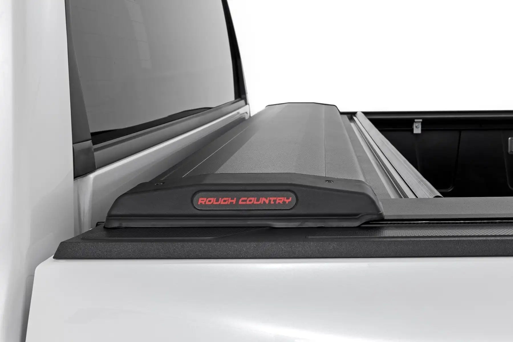 46514551A from Rough Country – Protect your cargo with Rough Country’s stylish and practical retractable cargo cover for the Toyota Tundra 2WD/4WD (2022-). Made with a weather-resistant vinyl coating over a sturdy aluminum construction, this durable cargo cover mounts securely to the load bars. The low, sleek design gives your truck a clean, modern look while protecting the contents of your cargo area.