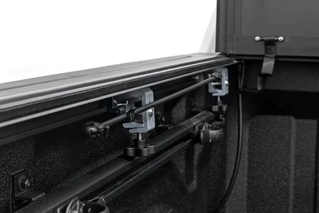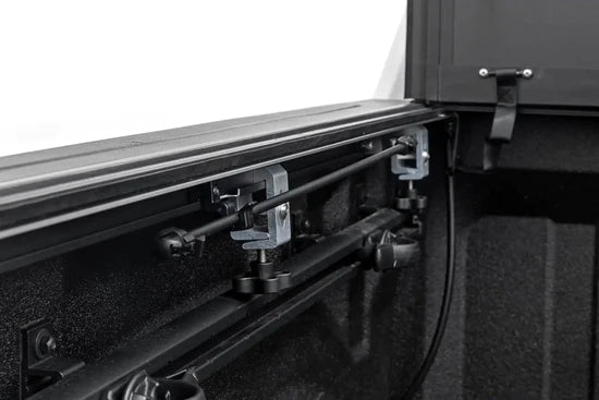Enhance your Toyota Tundra 2WD/4WD (2022-) with Rough Country's Hard Triple-Folding Bed Cover ( part number 49514551 ) that provides easy and full access to the cargo area. Innovative design that makes loading and unloading large items easier, while providing stylish and practical protection.