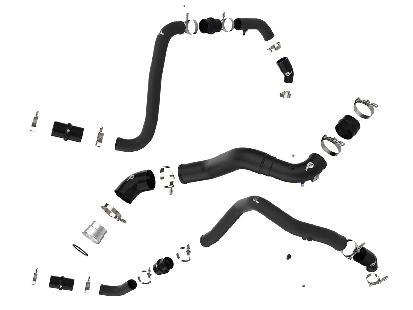 Directly replace your F-150's restrictive plastic charge pipes with aFe's BladeRunner free-flowing, heat-resistant aluminum pipes.
