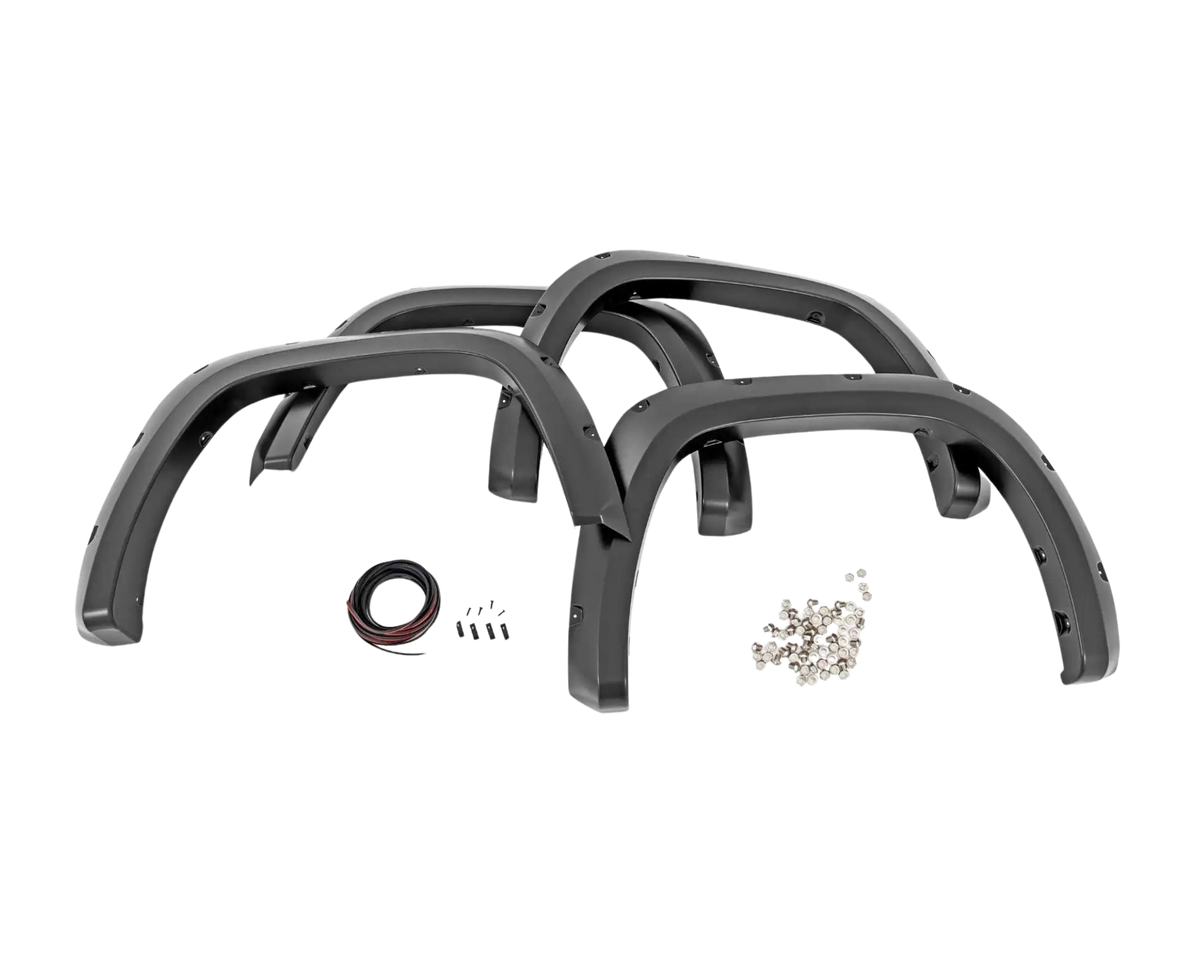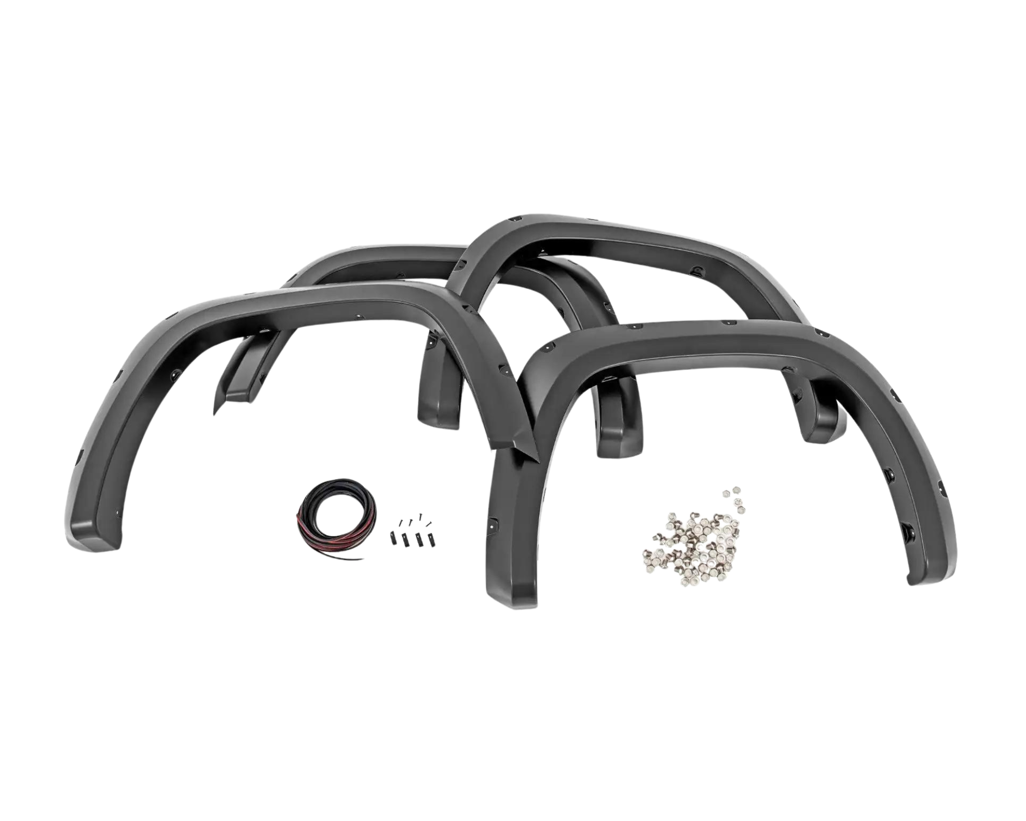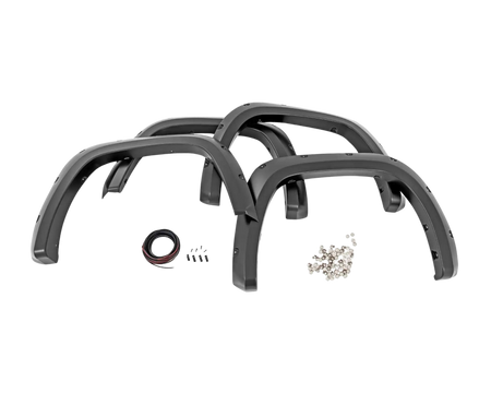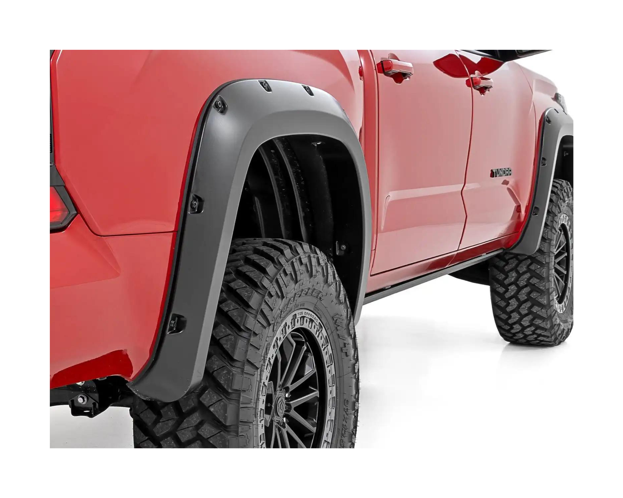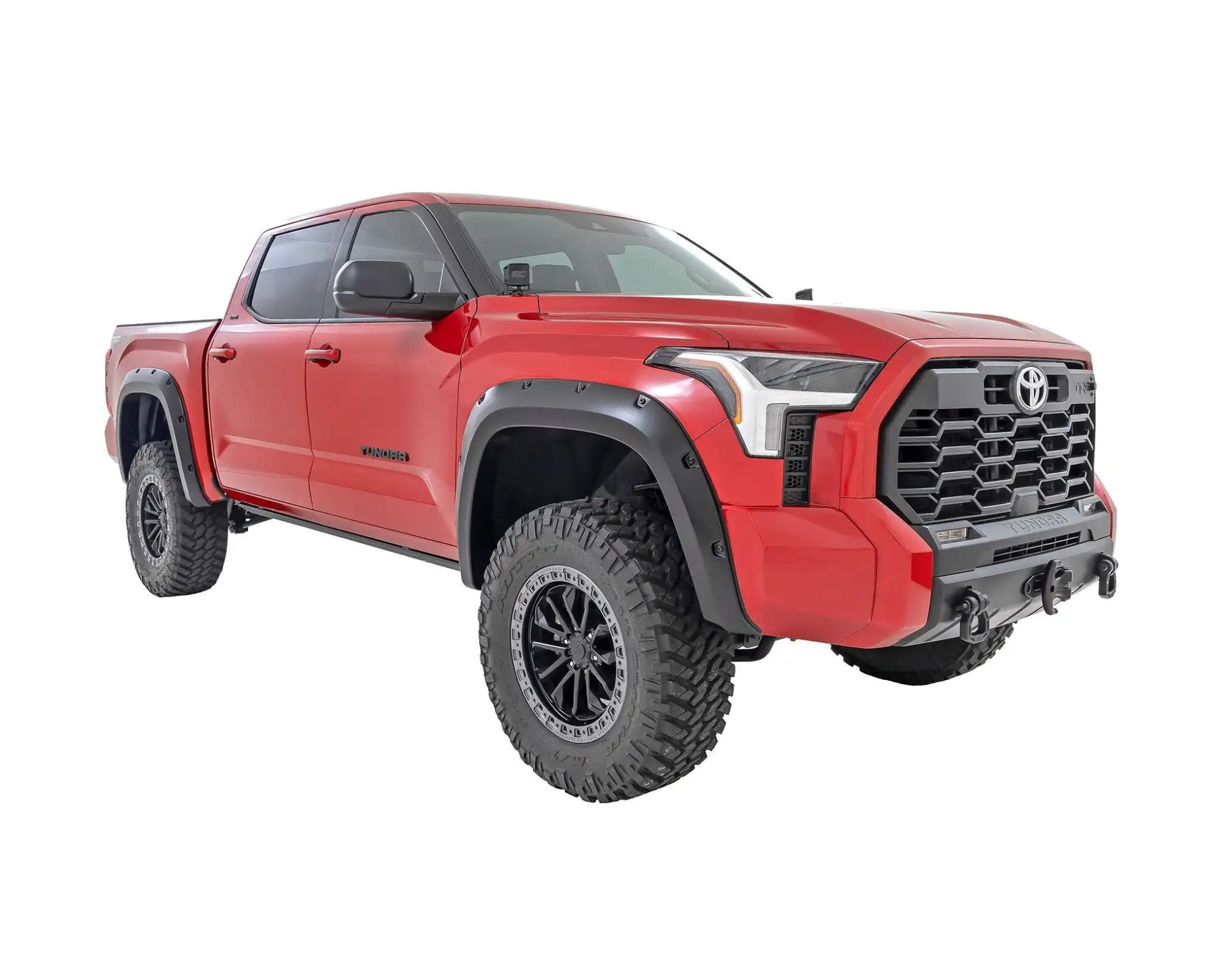Give your Toyota Tundra 2WD/4WD (2022 and up) a tougher look in no time with Rough Country's fender flares. Designed to give an aggressive, off-road-inspired look while protecting against stone chips and dirt. Installation is quick and requires no drilling or modification - and they can be easily removed if you want to restore your vehicle to its original finish.
