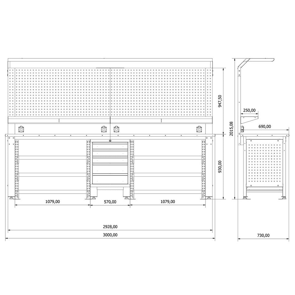Bench size W2960xD690 30 mm MDF + 2 mm PVC coated table