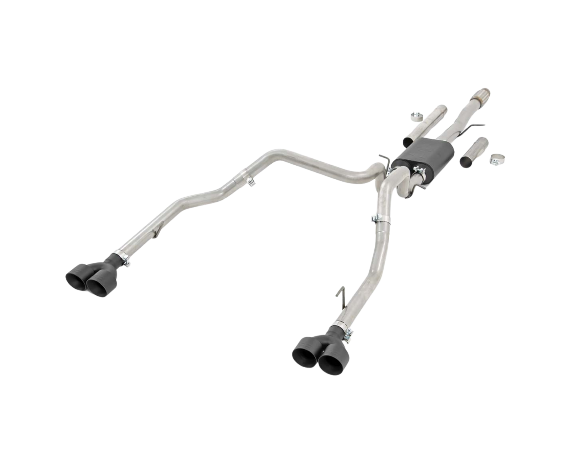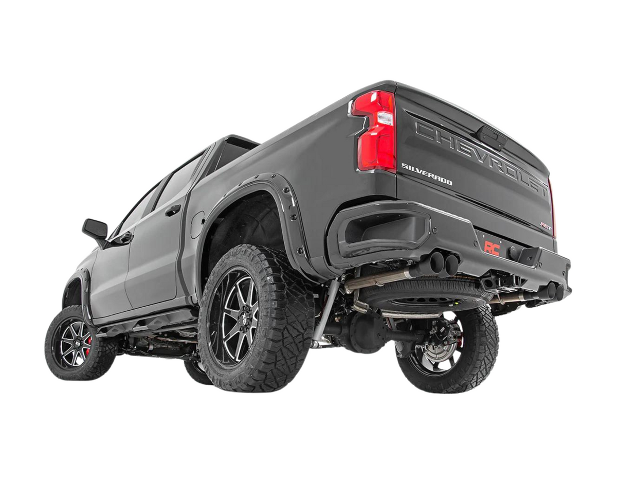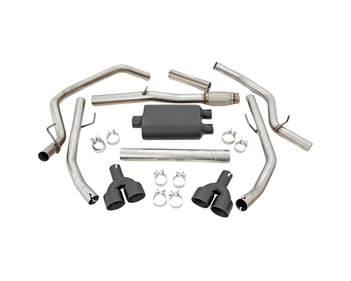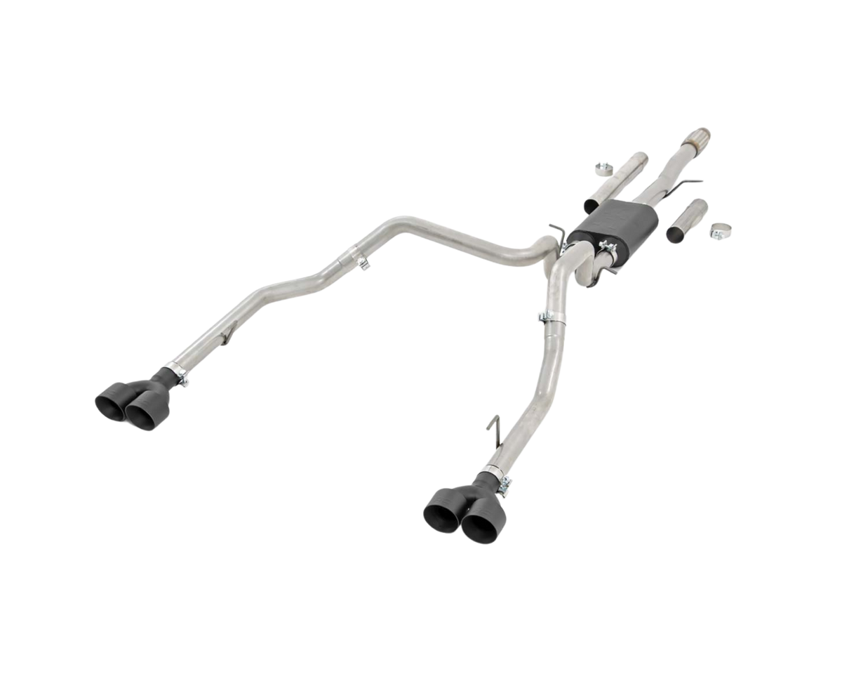 Give your truck an aggressive, throaty growl and killer good looks with Rough Country's Dual Cat-Back Exhaust System for Chevy Silverado / GMC Sierra 1500 models . These durable exhaust systems are fine tuned to improve air flow and deliver the perfect aftermarket exhaust note that will put a smile on your face every time you hit the gas.