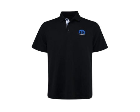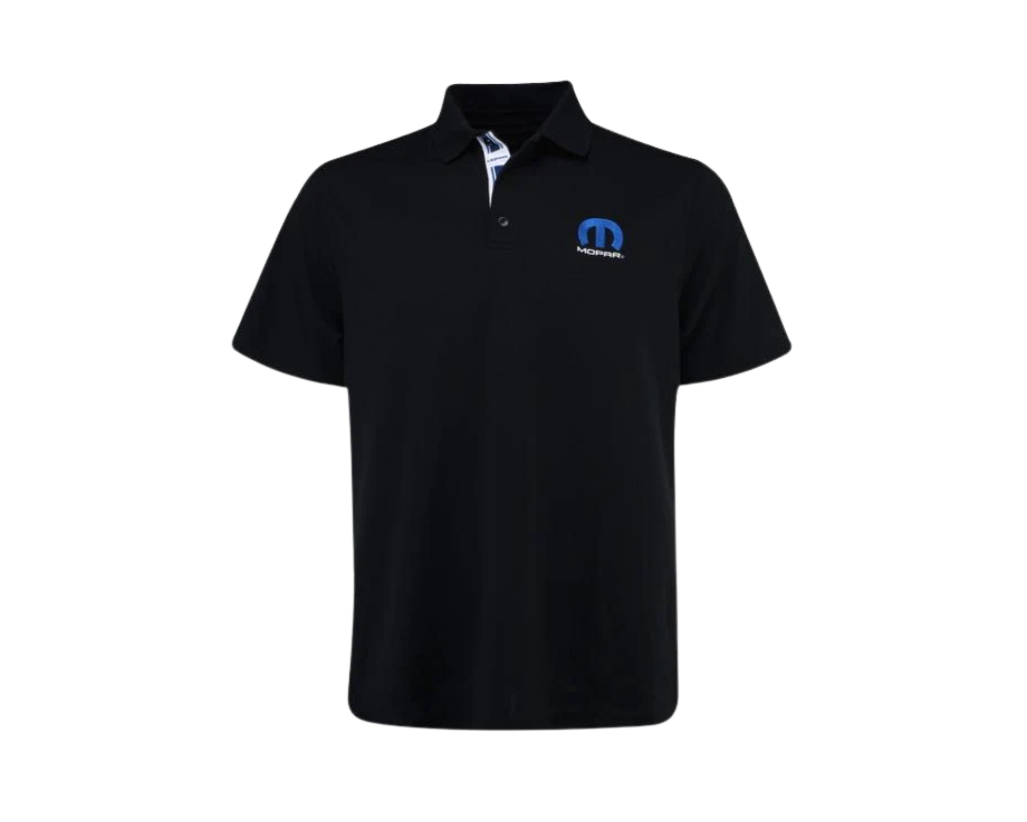 Original black polo shirt from Mopar. The shirt is decorated with a blue Mopar logo.