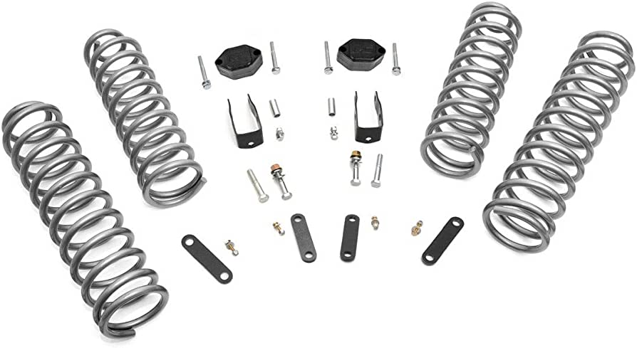 This kit features a set of lifted front and rear coil springs to offer a taller profile and fantastic off-road ability. These coil springs are factory-tuned to the OE spring rate to offer a factory-like ride quality. This kit also features a set of Rough Country’s N3 Shocks. These 10-stage variable valving, high-pressure Nitrogen charged shocks offer a fantastic blend of off-road action and smooth highway ride quality. With a durable 18mm spring-loaded piston rod and faster-cooling 54mm shock body, this shock offers up to 36kN Tensile Strength for a long lifespan of impressive vibration dampening. Features natural rubber bushings and an eye-catching metallic silver paint.