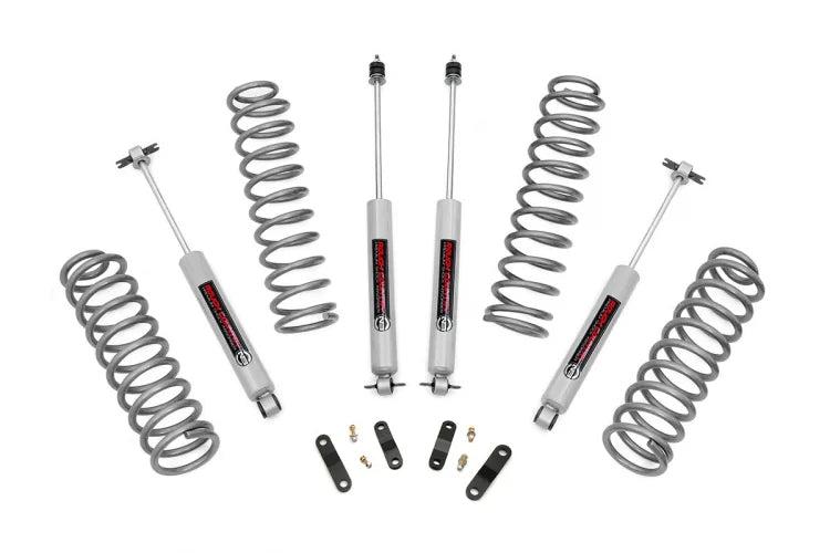 Transform your Jeep and run larger wheels and tires with Rough Country’s popular 2.5” Suspension lift! This easy-to-install suspension lift features everything you need to gain increased ground clearance and a killer new look.