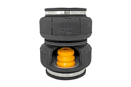 Heavy-duty Construction. Rough Country's Rear Air Spring Kit features two RC branded high-quality double convoluted airbags complemented with DOT-approved airlines. Whether you plan on towing or hauling in the not-so-distant future Rough Country's Air Spring kit is the must-have accessory to ensure that your trailer is level reducing the weight off of the tongue of your trailer. Each kit offers 1/4" push connector fittings and all of the bracketry needed to ensure installation is lightning fast and secure! Rough Country's Air Spring kit provides up to 5,000 lbs of load support to ensure that you experience less sway and bottoming out when braking and steering!