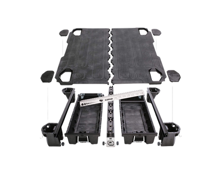 DECKED levereras i ett paket och är designat för varje specifikt fordon vilket gör att montaget endast tar 2-3 timmar. Materialet (HDPE) i DECKED är format runt en stålram och ger en hög tålighet med 1000 kg lastförmåga ovanpå och 100 kg lastförmåga per låda.