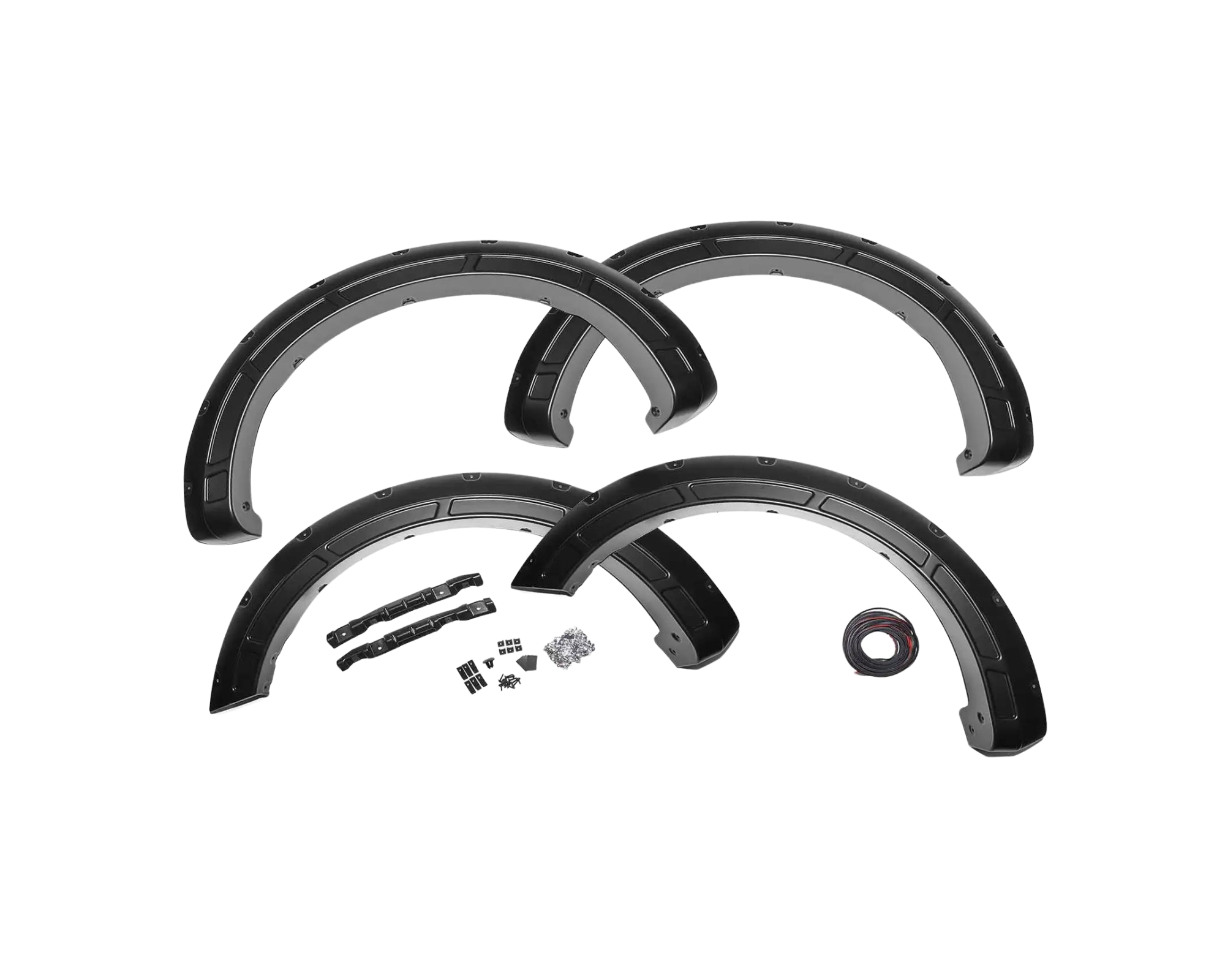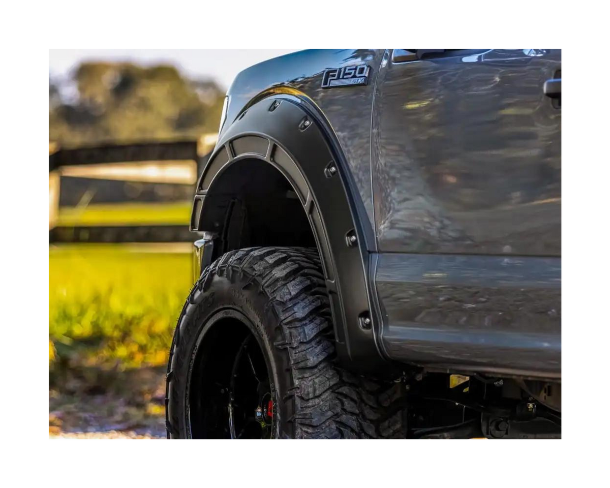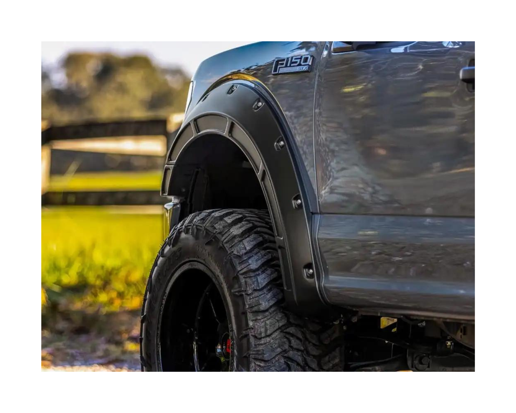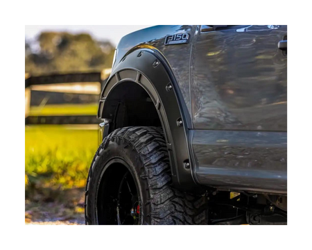 It’s time to stand out from the crowd and rise above your peers. Increase your truck's tire coverage with Rough Country's Defender Flares for the thirteenth-generation Ford F-150. These aggressively good-looking flares transform your F-150's exterior boasting 2-inches of tire coverage. These uniquely designed flares are sure to protect your F-150's body from mud or road debris kicked up by the tires.