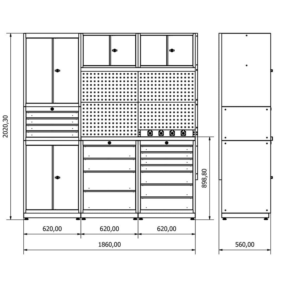 Mått H2020xB1860xD530 mm