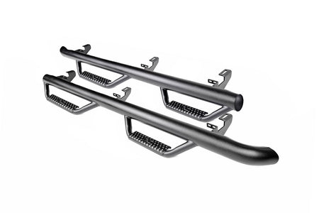 Rough Country's new Wheel to Wheel Nerf Steps provide unrelenting style and easier access to your truck. These steps extend from one wheel well opening to the next, offering a clean install that lends to the look of your lifted truck. These steps can be installed on any vehicle, with or without a body lift. Our innovative design actually hides any exposed frame you see under the truck, offering extra protection for your rocker panels. Rough Country Nerf Steps are Made out of ultra-durable .084 Wall corrosion resistant tubing with a Zinc Base Coat and Black Finish for a sharp look that's ready to withstand the elements.