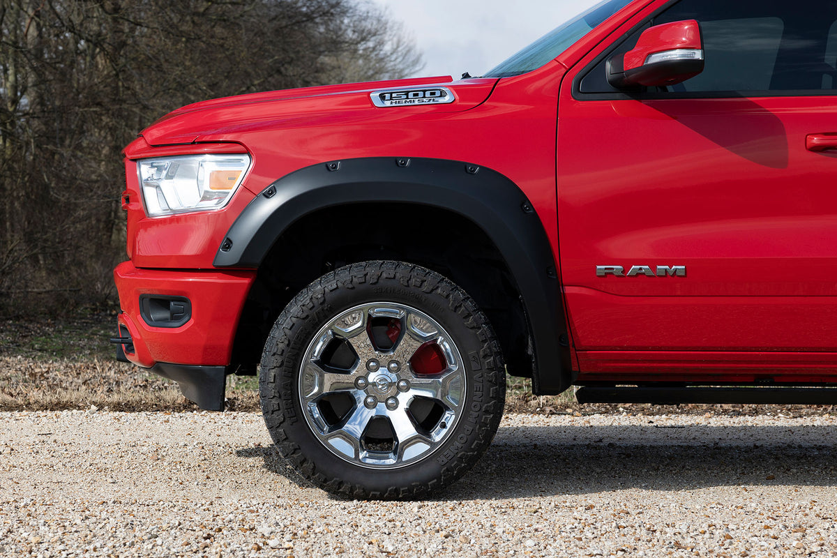 Add aggressive good looks quickly and easily with Rough Country's Fender Flares. Nothing compliments a new lift, wheels, and tires like a set of stylish, mean-looking fender flares. Rough Country's Fender Flares are designed with a simulated riveted look. These fender accessories bolt-on quickly and easily in a few secure mounting points, making installation a cinch. No cutting or drilling is required to install, and these flares can be easily removed and return your truck to stock! These UV treated fender flares ship in flat-black or can easily be painted to match your vehicle, and are designed to withstand the sun, rain and other elements of nature.