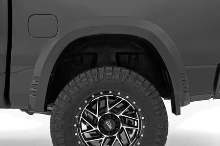 SF1 Fender Flares help you get the tough-looking finishing touch that your build deserves with a one-of-a-kind design. These flares complement the truck's body lines offering a clean look that will turn heads. The SF1 flare design gives the perfect amount of additional tire coverage for an oversized wheel and tire package and feature an integrated rear "mud catcher" to help reduce tire sling down the truck side. They are easy to install on your Ram 1500, with excellent fitment right out of the box and includes all necessary hardware. The construction of these flares is from a durable ABS material that is both UV resistant for an uncoated install or paint-ready for a custom color match look.