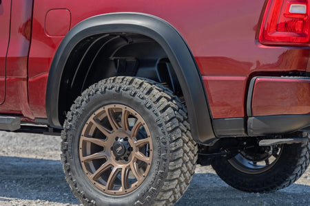 Style and Protection. Unlock the power of real protection and custom style with Rough Country's Sport Style Fender Flares for your fifth-generation Ram 1500! Offering 5 inches of Flare Height, you know your truck is getting the coverage it needs from flying debris and road grime. Not only will these flares safeguard your vehicle, but they will look great too - featuring a bold custom look that stands out and turns heads. Plus, if you want to take your customization game up a notch, these fender flares are easily paintable so they can match your truck in color and style. Get ready to rock this new rugged look – with Rough Country's Sport Style Fender Flares!