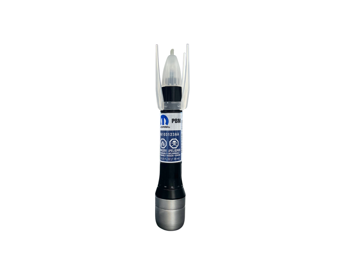 Originalt lackstift med artikelnummer 6103123AA från Mopar – speciellt framtaget för färgkoden PBM - Ocean Blue Metallic. Detta högkvalitativa lackstift är idealiskt för att snabbt och effektivt reparera mindre lackskador som repor eller andra ytliga skador på din Jeep, Dodge, RAM eller Chrysler.
