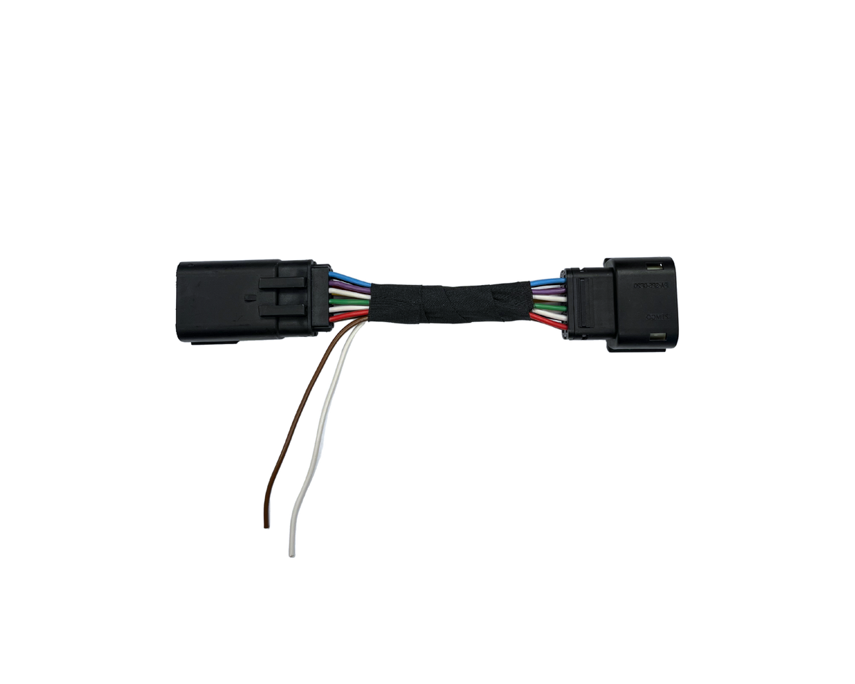 Skarvkabelsats för koppling mellan originalkabelhärvan och strålkastare fram för att få ut signal till helljus och parkeringsljus.